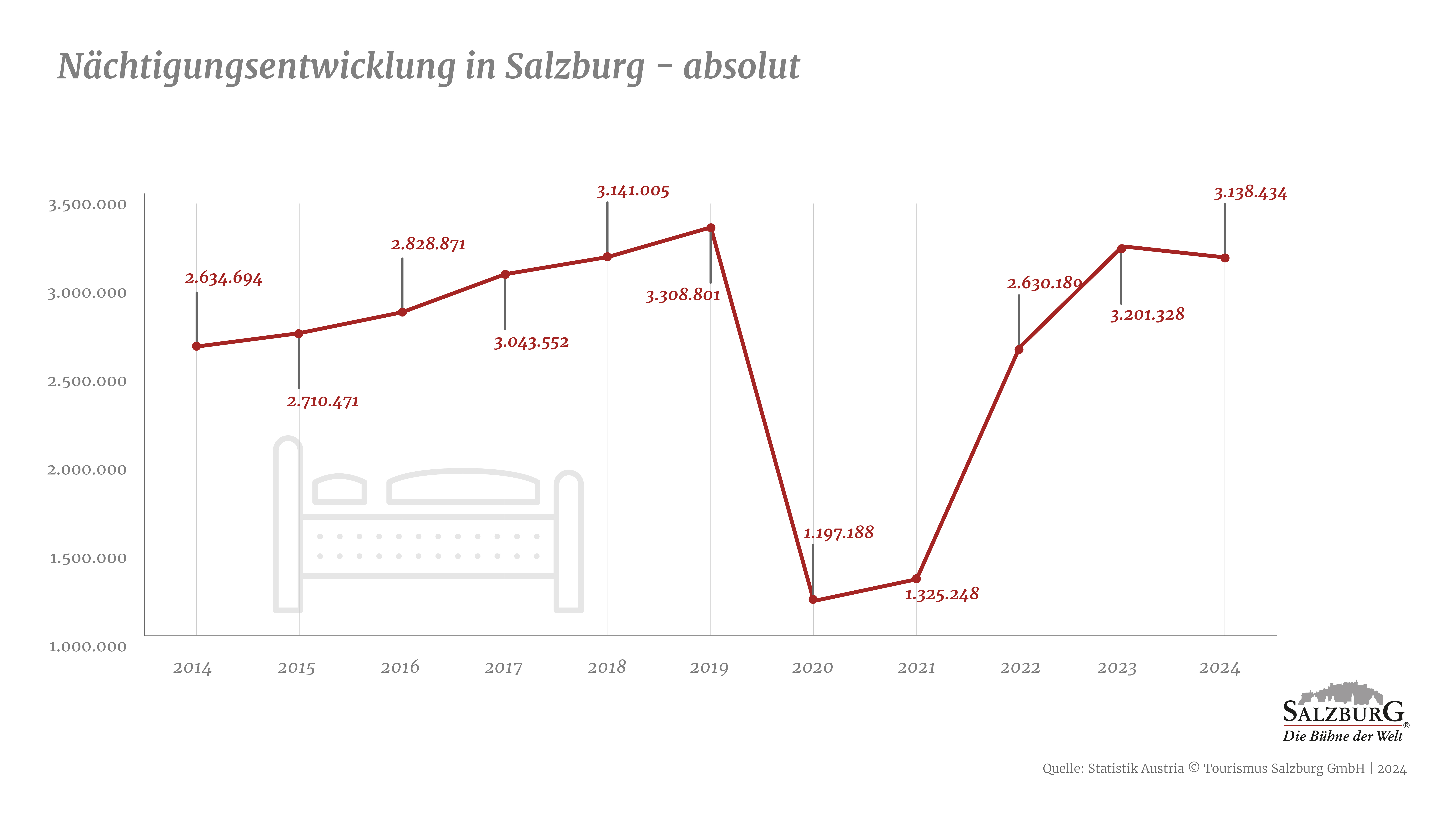 Hier finden Sie die aktuellsten Tourismuskennzahlen und statistischen Informationen zu Ihrer weiteren Verwendung. Nutzen Sie unser Angebot direkt als Download für Ihre Medienberichterstattung oder für die strategische Ausrichtung Ihres Unternehmens. Die Daten werden zusammengestellt aus den amtlichen Zahlen der Stadt Salzburg und Statistik Austria.